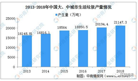 隨著我國城市化進程步伐的加快,垃圾焚燒處理需求持續(xù)旺盛。我國是人口大國,也是垃圾產(chǎn)生大國,且隨著經(jīng)濟穩(wěn)步發(fā)展、民眾生活消費水平、城鎮(zhèn)化率不斷提高,生活垃圾產(chǎn)生量持續(xù)走高,2018年,全國200個大、中城市生活垃圾產(chǎn)生量21147.3萬噸。
