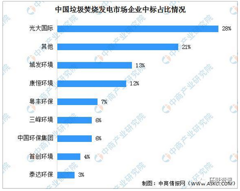 具體來看企業(yè),目前垃圾焚燒發(fā)電行業(yè)的上市企業(yè)主要有國有企業(yè),如中國環(huán)境保護集團、康恒環(huán)境、光大國際、北京控股、重慶三峰、綠色動力、深圳能源、上海環(huán)境、廣州環(huán)保、瀚藍環(huán)境等;民營企業(yè),如粵豐環(huán)保、錦江環(huán)境、旺能環(huán)境、中國天楹、偉明環(huán)保等;外資企業(yè),如威立雅中國等。