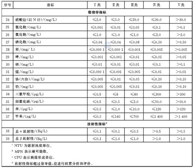 其變化包括,水質(zhì)指標(biāo)由GB/T 14848-1993的39項(xiàng)增加到了93項(xiàng);將地下水質(zhì)量指標(biāo)劃分為常規(guī)指標(biāo)和非常規(guī)指標(biāo);感官性及一般化學(xué)指標(biāo)由17項(xiàng)增加到20項(xiàng),修訂了總硬度、鐵、錳、氨氮4項(xiàng)指標(biāo);修訂了地下水質(zhì)量綜合評(píng)價(jià)的有關(guān)規(guī)定等。