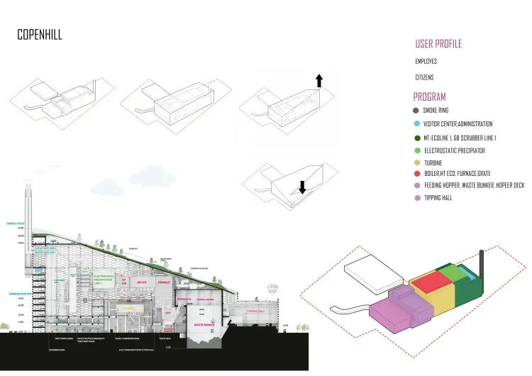 既能體驗到戶外攀巖的樂趣,又能看到身后的城市景觀,這種感覺也是夠獨特了。這座環(huán)保型的垃圾發(fā)電廠,每年能夠處理當(dāng)?shù)鼐用?400,000 噸的垃圾,為 15 萬住戶提供電力和集中供暖。每天約有 250-350 輛卡車,將垃圾運送到這里。垃圾會被扔進(jìn)熔爐焚燒,熔爐在最高運轉(zhuǎn)效率時,每小時能燃燒掉 70 噸的垃圾,這樣高效的操作,可以為哥本哈根 99% 的建筑物供熱,以此消除大量的煤炭和化石污染。