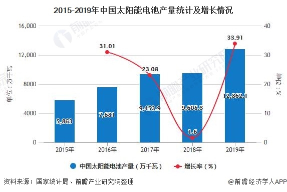 1、2019年中國太陽能電池產(chǎn)量突破億千瓦