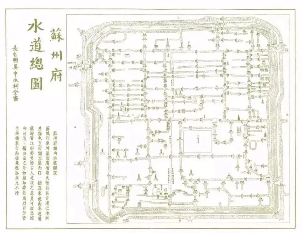 借助完備的城市水網(wǎng)體系,再加上向外伸出的胥江、上塘河、元和塘、至和塘、等河道與護城河連結(jié),并對外溝通向城鄉(xiāng),共同構(gòu)成了城內(nèi)、城外有機結(jié)合的水網(wǎng)體系。