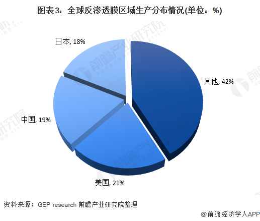 目前,美國、中國和日本和是反滲透膜最重要的生產(chǎn)國家,3個(gè)國家的總產(chǎn)量占全球總產(chǎn)量的比重接近60%。其中,美國、中國和日本位居前三位,占比分別為21%、19%和18%。