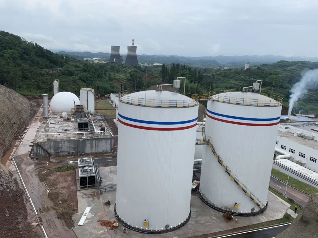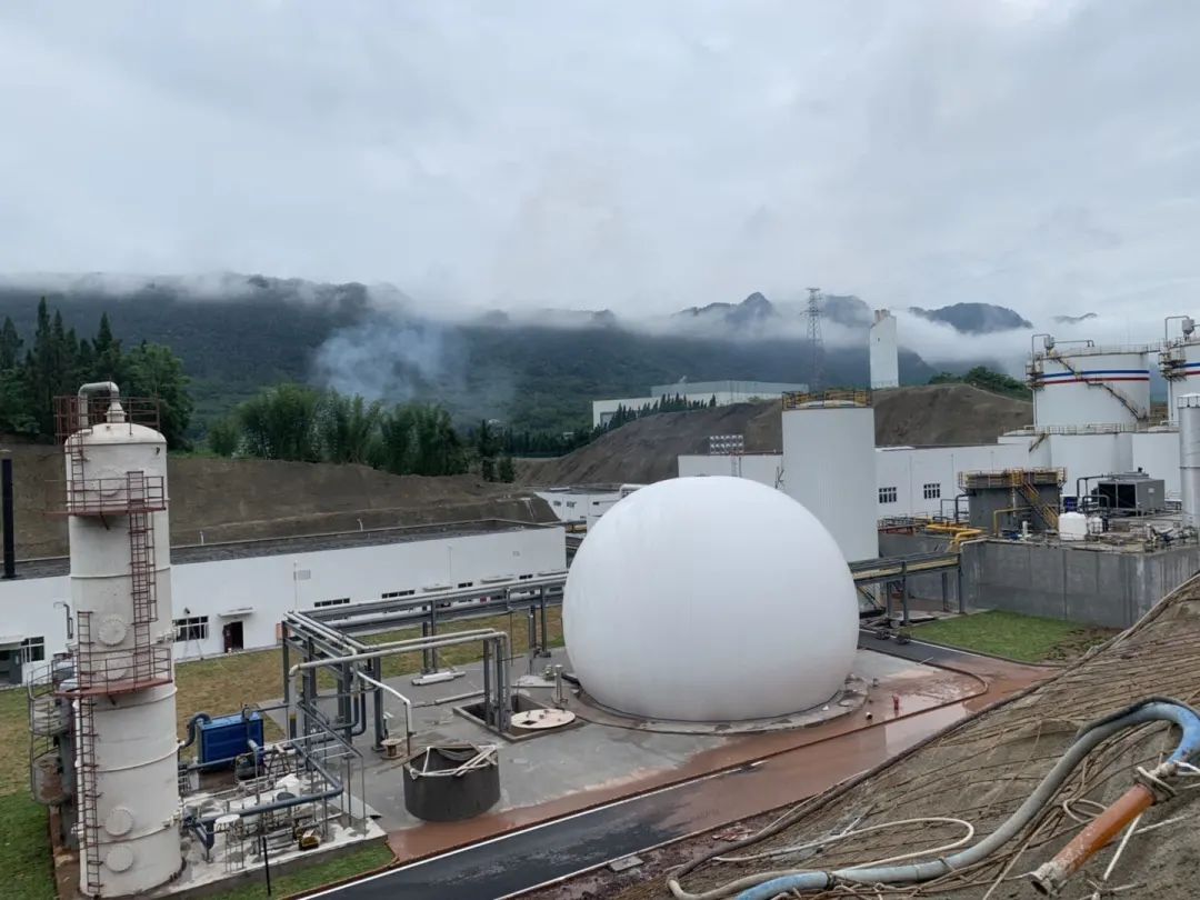 現(xiàn)場的設(shè)備涉及到厭氧罐、調(diào)節(jié)罐、中儲(chǔ)罐、干式脫硫塔、沼氣儲(chǔ)罐、脫氮罐、火炬、MBR膜系統(tǒng)、熱平衡系統(tǒng)等。如圖所示: