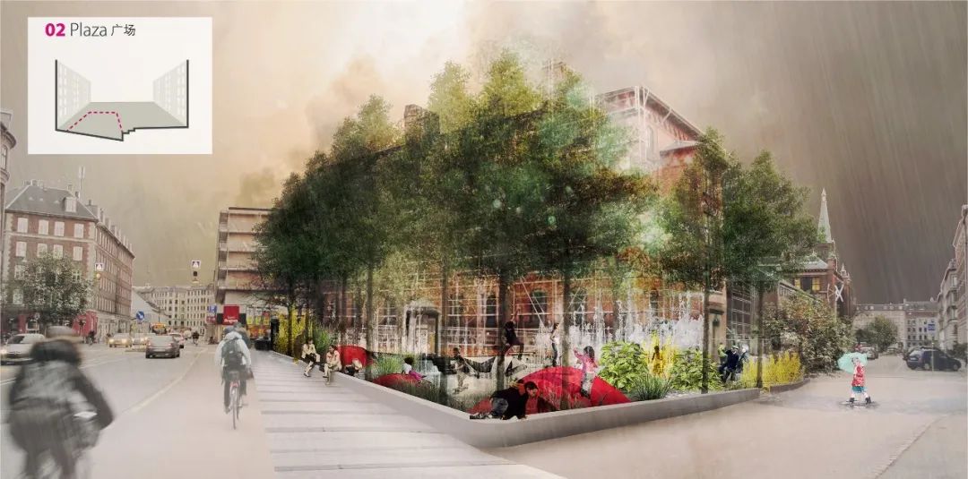在海綿城市設(shè)計中,對城市宜居性的提升應(yīng)與對氣候的適應(yīng)并重。作為此方面的典范,丹麥?zhǔn)锥几绫竟械谋┯攴揽卦敿氁?guī)劃提出了一套雄心勃勃的計劃,旨在幫助城市免受未來的暴雨之害。總體規(guī)劃確立后,哥本哈根市政府開始著手為城市的各個分區(qū)制定具體的海綿城市景觀設(shè)計方案。此次景觀設(shè)計將不僅能夠應(yīng)對日益頻繁的極端暴雨天氣,還可以大幅度提升城市的宜居性,造福今時與后世的居民。此外,整套規(guī)劃的總體耗資也低于傳統(tǒng)工程方案。
