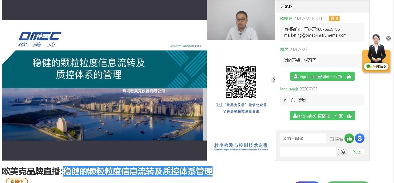 珠海歐美克(←點擊進(jìn)入)直播間為大家?guī)砹朔€(wěn)健的顆粒粒度信息流轉(zhuǎn)及質(zhì)控體系管理課程講解。