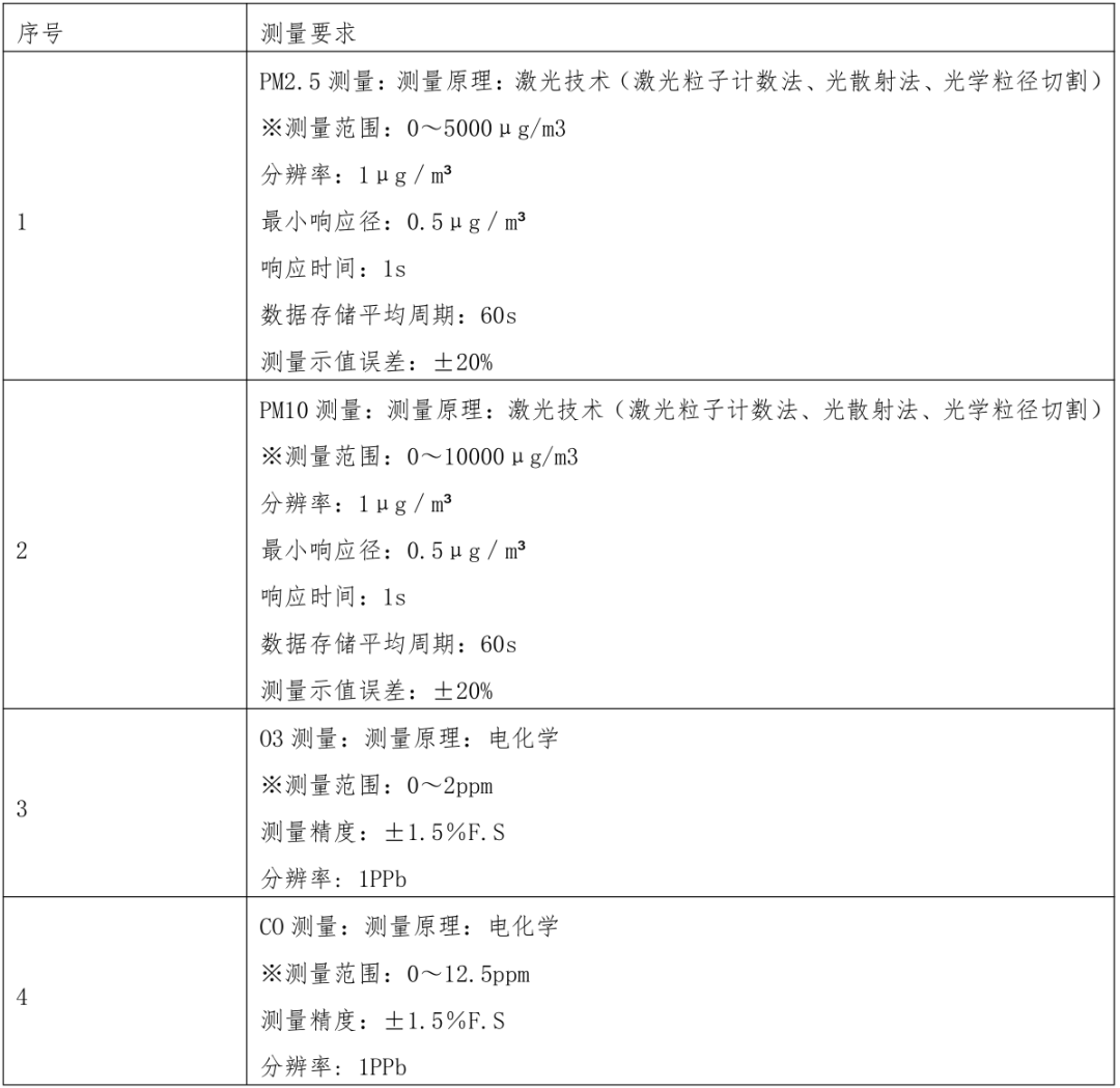 該項(xiàng)目需環(huán)境空氣網(wǎng)格化監(jiān)測系統(tǒng),集成 PM2.5、PM10、O3、CO、SO2、NO2、TVOC、濕度、溫度、風(fēng)速、風(fēng)向在線監(jiān)測儀、數(shù)據(jù)采集等技術(shù)為一體的智能監(jiān)測終端,主要用于環(huán)境空氣質(zhì)量的在線實(shí)時(shí)自動(dòng)監(jiān)控。執(zhí)行標(biāo)準(zhǔn)為生態(tài)環(huán)境部技術(shù)指南、GB3095-2012、GB/T6167、GB/T35273-2017《地面氣象觀測規(guī)范》。
