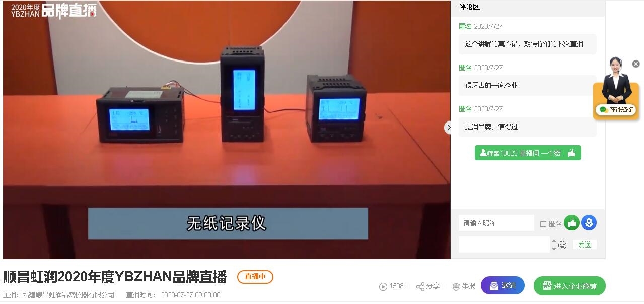 由儀表網(wǎng)主辦的“2020年度YBZHAN品牌直播”公益活動(dòng)(←點(diǎn)擊進(jìn)入直播間)正在火熱進(jìn)行中。今天(7月27日),上午9:00數(shù)顯儀表品牌專(zhuān)場(chǎng)(←點(diǎn)擊進(jìn)入)火熱開(kāi)播。