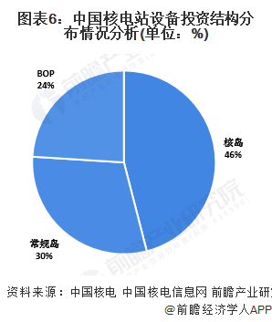 中國核電設(shè)備主要分為核島設(shè)備、常規(guī)島設(shè)備和輔助設(shè)備系統(tǒng)(BOP)。核島是整個(gè)核電站的核心,負(fù)責(zé)將核能轉(zhuǎn)化為熱能,是核電站所有設(shè)備中工藝最復(fù)雜、投入成本最高的部分。常規(guī)島利用蒸汽推動汽輪機(jī)帶動發(fā)動機(jī)發(fā)電。輔助系統(tǒng)(BOP)主要包括數(shù)字化控制系統(tǒng)、暖通系統(tǒng),保障核電站平穩(wěn)運(yùn)行。根據(jù)中國核電和中國核電信息網(wǎng)的披露,一般而言,核島設(shè)備、常規(guī)島設(shè)備和輔助設(shè)備系統(tǒng)(BOP)在核電設(shè)備的投資占比分別為46%、30%和24%。