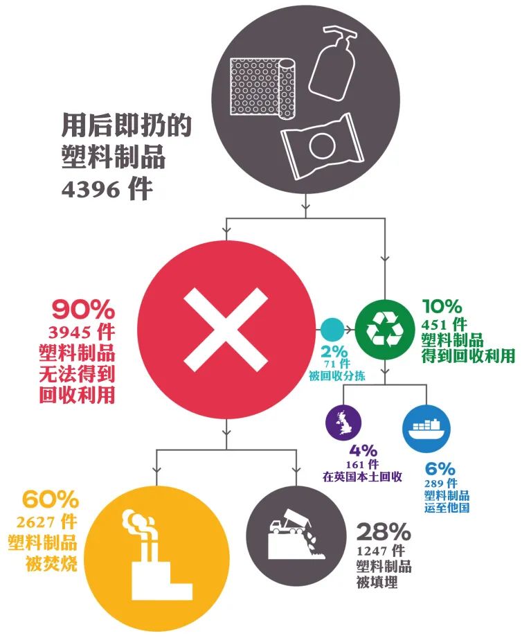 更驚訝的是,這些垃圾中有98%是用戶即扔的塑料制品!