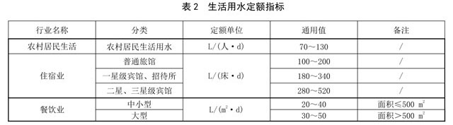 主要參考DB36/T 419來確定用水量,由于農(nóng)村生活用水量因區(qū)域、生活習慣差異等因素波動較大,九江市農(nóng)村地區(qū)生活用水量可按表2選用。