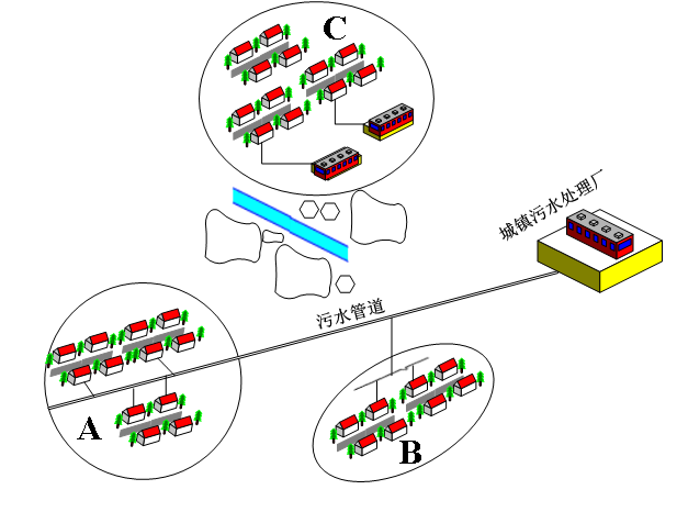 針對村莊人口數(shù)量較多、污水排放量較大、分布較為集中的情況,對一定區(qū)域內(nèi)產(chǎn)生的生活污水通過較大范圍的管網(wǎng)進行收集,輸送至指定地點,并進行處理的方式。