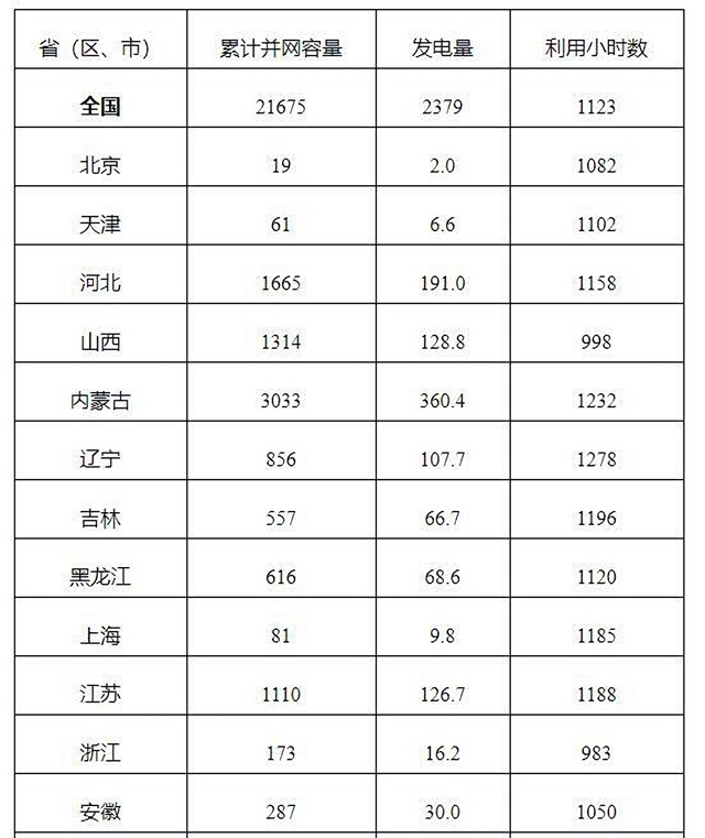 上半年風(fēng)電發(fā)電量2379億千瓦時(shí),同比增長(zhǎng)10.9%;全國(guó)風(fēng)電平均利用小時(shí)數(shù)1123小時(shí),利用小時(shí)數(shù)較高的地區(qū)是云南(1736小時(shí))、四川(1488小時(shí))和廣西(1414小時(shí))。
