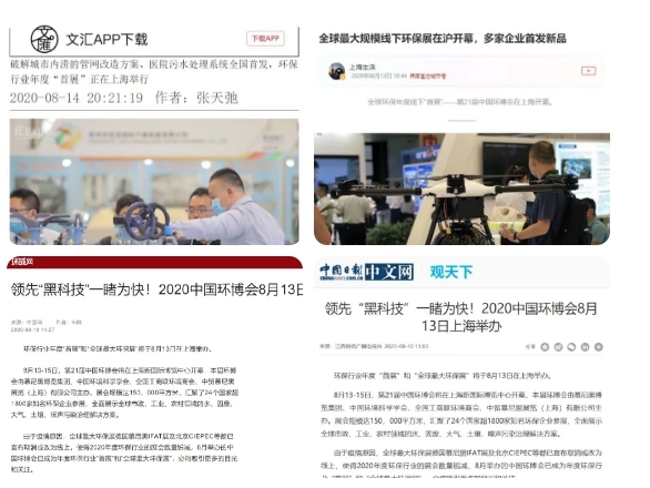 在疫情常態(tài)化后,環(huán)保行業(yè)“首展”的成果舉辦,對(duì)加速我國(guó)環(huán)保產(chǎn)業(yè)經(jīng)濟(jì)的復(fù)蘇意義非凡,因此也引起了各界大眾媒體、行業(yè)媒體的參與、報(bào)導(dǎo)。中央電視臺(tái)、上海電視臺(tái)、新華社、人民網(wǎng)、福布斯中國(guó)、中國(guó)環(huán)境報(bào)、每日經(jīng)濟(jì)新聞、第一財(cái)經(jīng)、澎湃新聞、經(jīng)濟(jì)日?qǐng)?bào)、中國(guó)日?qǐng)?bào)、環(huán)球網(wǎng)、文匯報(bào)、界面新聞、新聞晨報(bào)等超過(guò)40家大眾媒體記者蒞臨展會(huì)現(xiàn)場(chǎng),記錄傳播中國(guó)環(huán)保產(chǎn)業(yè)在特殊時(shí)期的高光時(shí)刻。