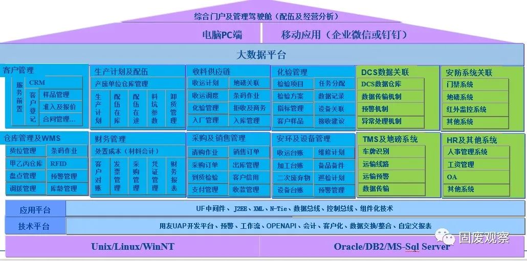 翟總首先介紹了對環(huán)保領(lǐng)域的理解他分享了古雷訊通在與危廢企業(yè)多年的合作中,對危廢行業(yè)的新理解。他說,現(xiàn)在危廢處理行業(yè)新建項目眾多,處置設施增加了對人員團隊需求,危廢行業(yè)正在趨向集團化協(xié)同管理,存在價格戰(zhàn)以及客戶爭奪戰(zhàn)。站在產(chǎn)廢企業(yè)視角,在精細化生產(chǎn)及成本控制方面,成本控制是所有工業(yè)企業(yè)最關(guān)注的核心,廢棄物處置是制造費用的。產(chǎn)品研發(fā)及銷售通道方面,除了政府強制,企業(yè)更關(guān)心自己的業(yè)務。工業(yè)垃圾處置方面,企業(yè)考慮的是誰的價格低,誰的服務好,誰的處置更安全。站在政府視角,政府希望人民健康及社會穩(wěn)定,希望工業(yè)企業(yè)給社會帶來的價值更多,更大,給社會帶來的就業(yè)更多,也在試圖幫助工業(yè)企業(yè)降低成本。政府需要合理的競爭,以促進危廢處置技術(shù)進步及多元化;危廢行業(yè)正在從政府導向到市場導向再到價格戰(zhàn)。利用市場的手通過市場刺激技術(shù)進步,利潤稀釋推進處置企業(yè)走向精細化及規(guī)?;?jīng)營。借助信息化走向精細化及規(guī)模化經(jīng)營是企業(yè)的一個必然選擇,信息化需合規(guī),然后逐步做到流程化,自動化,智能化。用友借助歷史機遇,從做財務軟件到開啟平臺化戰(zhàn)略。從軟件供應商成功轉(zhuǎn)型為生態(tài)鏈服務商。