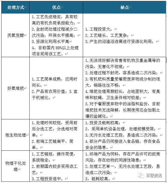 餐廚垃圾大規(guī)模集中處理的主要有厭氧發(fā)酵、好氧堆肥、微生物處理、物理干化處理等。由于國(guó)內(nèi)的企業(yè)大多是從環(huán)保領(lǐng)域切入到餐廚垃圾處理領(lǐng)域,因此相關(guān)企業(yè)的主營(yíng)業(yè)務(wù)以及技術(shù)儲(chǔ)備決定了企業(yè)所采用的處理工藝。