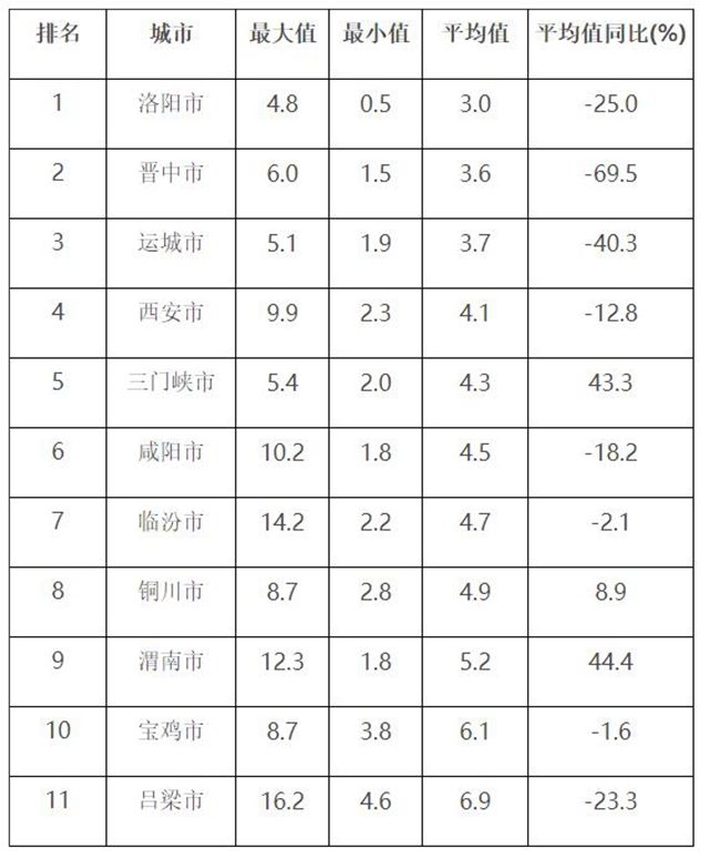 2020年7月汾渭平原11城市降塵監(jiān)測(cè)結(jié)果