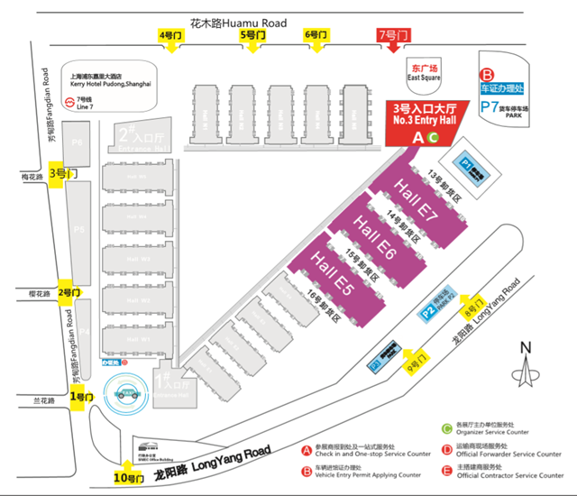 1.乘坐地鐵的參會代表,建議在7號線花木路站5號出口出站,經(jīng)上海新國際博覽中心2號入口大廳進(jìn)入展廳。