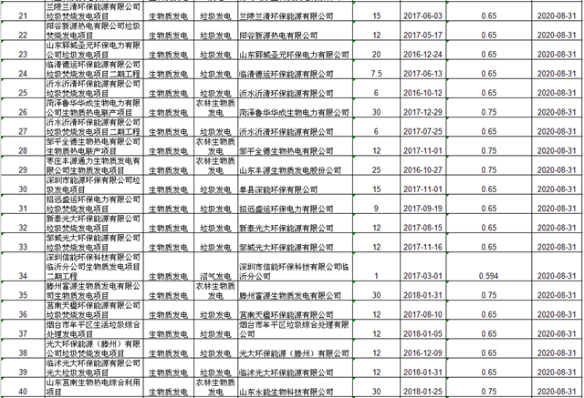 其中納入補(bǔ)貼清單的生物質(zhì)能發(fā)電項目列表如下: