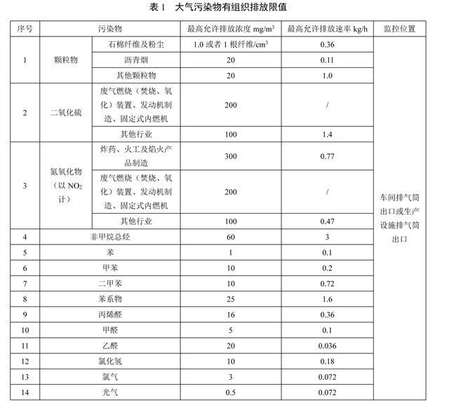 4.1.1 固定污染源排氣筒污染物排放限值執(zhí)行表1標準。新建污染源自本標準實施之日起3個月起后執(zhí)行,現(xiàn)有污染源自2022年7月1日起執(zhí)行。