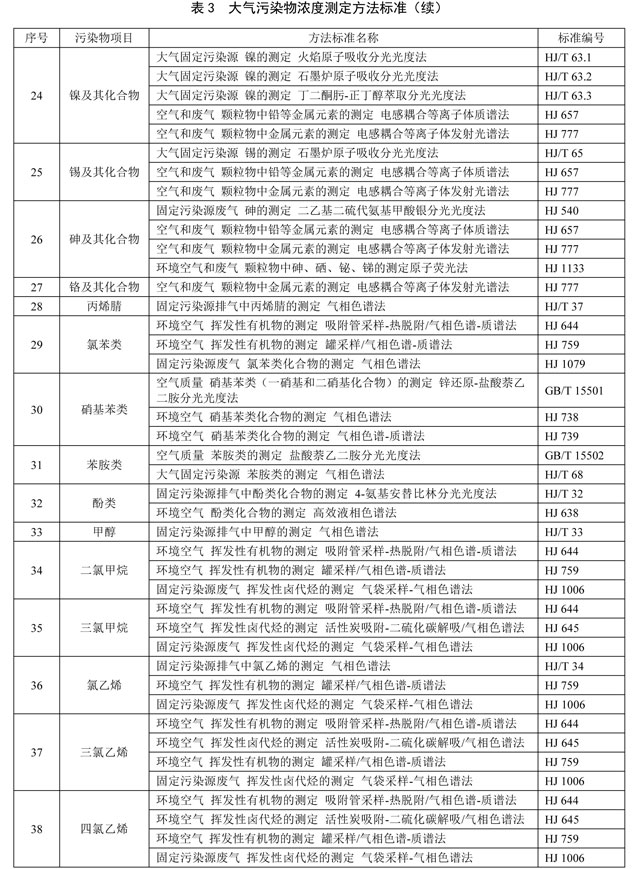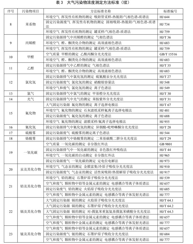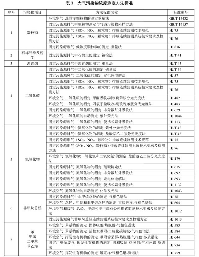 5.6 對大氣污染物排放濃度的測定采用表3所列的方法標準。本標準發(fā)布實施后,有新發(fā)布的國家環(huán)境監(jiān)測分析方法標準,其方法適用范圍相同的,也適用于本標準對應污染物的測定。