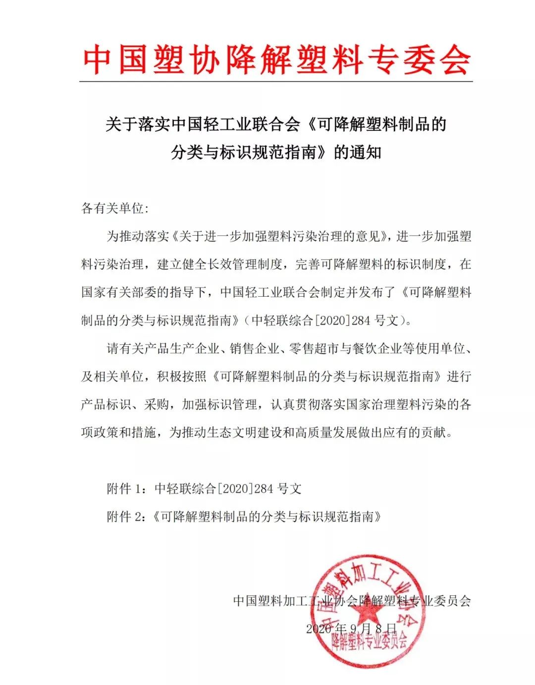 《倡議書》提出,將以可循環(huán)、易回收、可降解為導(dǎo)向,加大科技創(chuàng)新力度,研發(fā)性能達(dá)標(biāo)、綠色環(huán)保、經(jīng)濟(jì)適用的塑料材料與制品。同時(shí),加快相關(guān)標(biāo)準(zhǔn)研制,完善有關(guān)塑料再生利用標(biāo)準(zhǔn)體系,發(fā)布《可降解塑料的分類與標(biāo)識(shí)要求指南》及再生塑料系列標(biāo)準(zhǔn),按照可降解塑料綠色設(shè)計(jì)評(píng)價(jià)標(biāo)準(zhǔn),開展綠色設(shè)計(jì)產(chǎn)品評(píng)價(jià)認(rèn)定,為建立規(guī)范回收和循環(huán)利用的產(chǎn)業(yè)體系提供技術(shù)支撐。9月8日,中國輕工業(yè)聯(lián)合會(huì)發(fā)布《可降解塑料的分類與標(biāo)識(shí)要求指南》通知,通知如下: