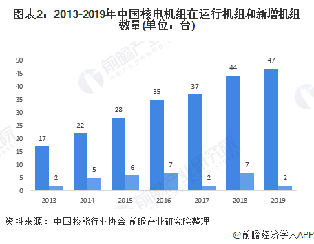 截至2019年,中國(guó)運(yùn)行核電機(jī)組共47臺(tái)(不含臺(tái)灣地區(qū)),裝機(jī)容量為48751.16MWe(額定裝機(jī)容量),2019年1-12月全國(guó)共有2臺(tái)核電機(jī)組完成首次裝料和并網(wǎng)運(yùn)行。
