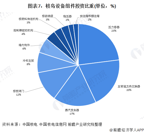 據(jù)中國(guó)核電和中國(guó)核電信息網(wǎng)的披露,一般而言,核島設(shè)備中,壓力容器、主管道及熱交換器、蒸汽發(fā)生器都是投資的重點(diǎn),其中壓力容器占比為23%,主管道及熱交換器占比為20%,蒸汽發(fā)生器占比為17%,核電閥門占比大概為12%。