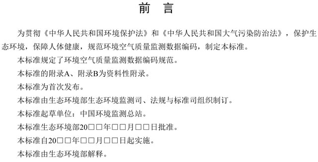 原標題:環(huán)境空氣質量監(jiān)測數(shù)據(jù)編碼技術規(guī)范(征求意見稿)