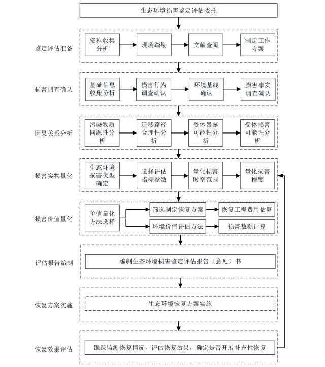 提出了生態(tài)環(huán)境損害鑒定評估的3大原則:合法合規(guī)、科學合理、獨立客觀;鑒定評估工作程序如下: