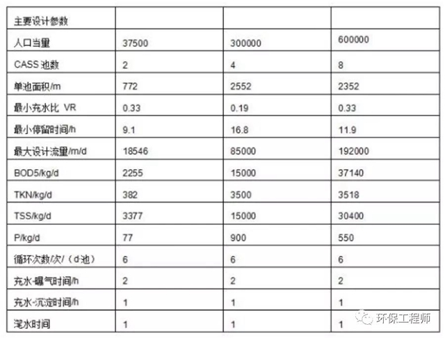 CASS工藝處理不同規(guī)模城市污水時的主要設(shè)計參數(shù)