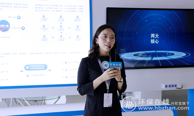 綠創(chuàng)科技高級項(xiàng)目經(jīng)理徐曼著重介紹了公司的集水質(zhì)預(yù)警與溯源于一體水污染防治系統(tǒng)、推動生態(tài)環(huán)境從單一監(jiān)管型向立體管控型轉(zhuǎn)變的三線一單”數(shù)據(jù)管理系統(tǒng)。