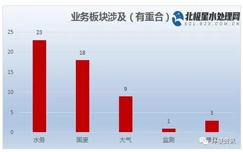 據(jù)北極星水處理網(wǎng)統(tǒng)計,50強企業(yè)中,業(yè)務(wù)涉及范圍以水務(wù)板塊居多,水務(wù)企業(yè)多達(dá)23家,幾乎占據(jù)半壁江山;固廢企業(yè)緊隨其后,也多達(dá)18家;大氣治理企業(yè)9家;環(huán)境監(jiān)測企業(yè)只有聚光科技上榜;涉及修復(fù)的企業(yè)有3家。