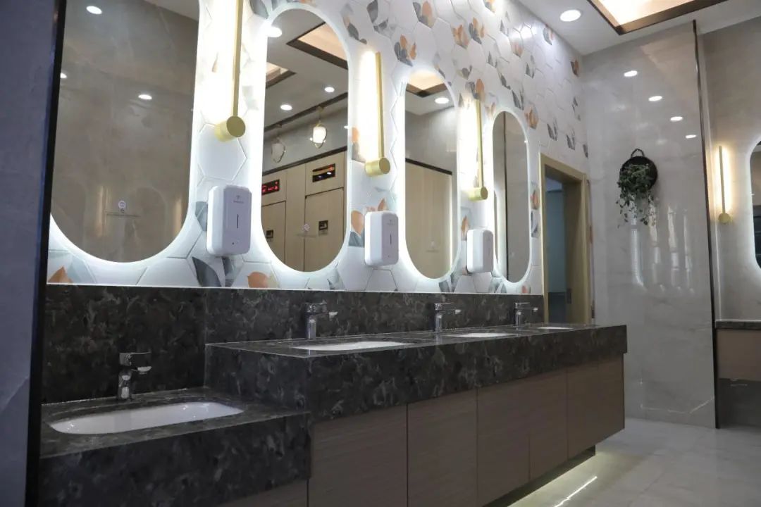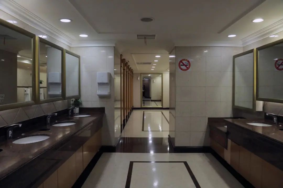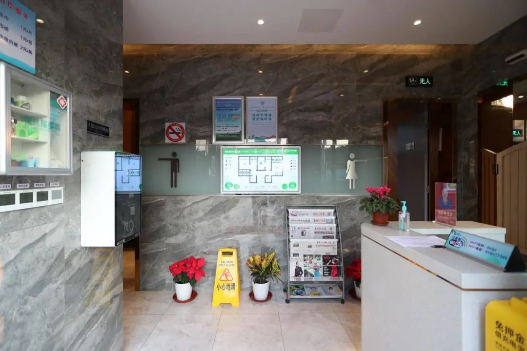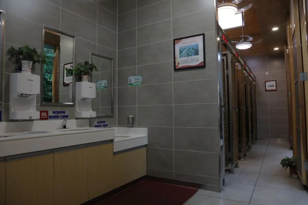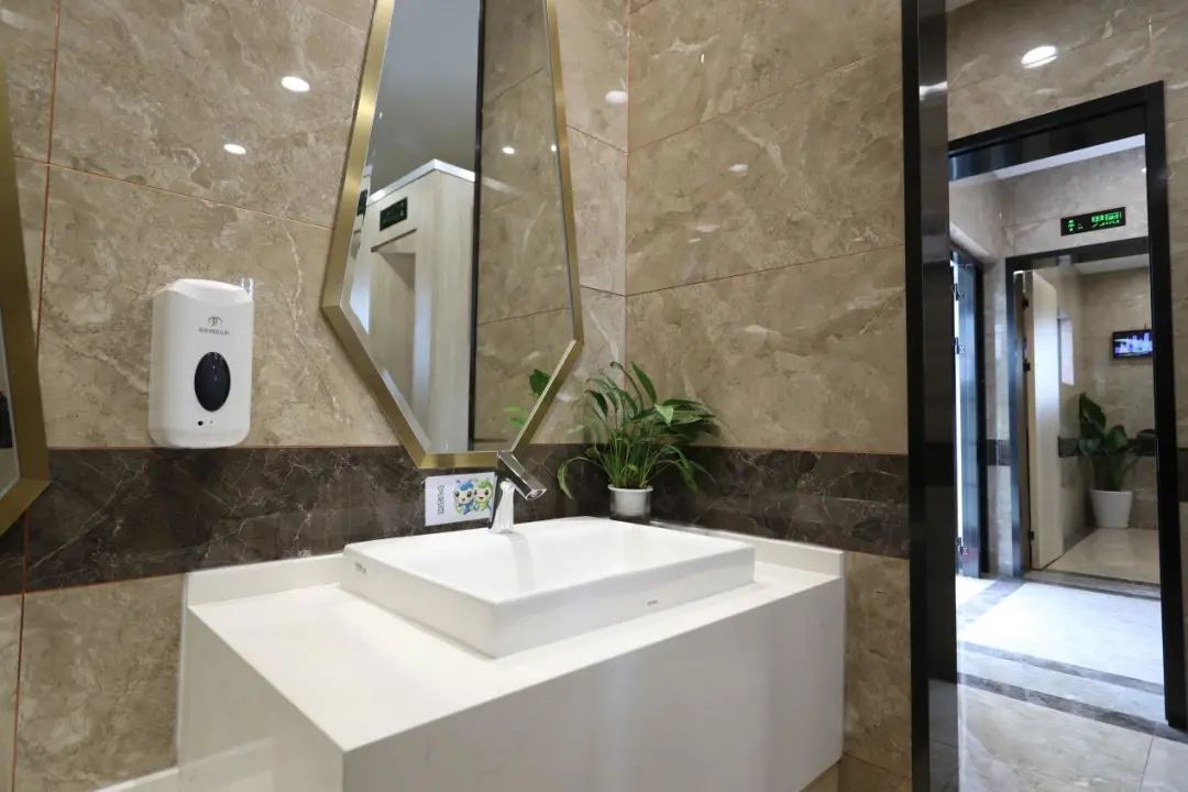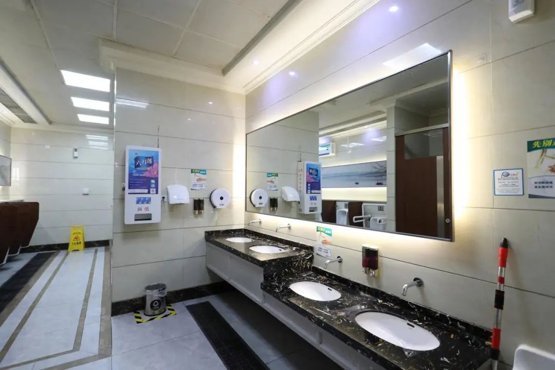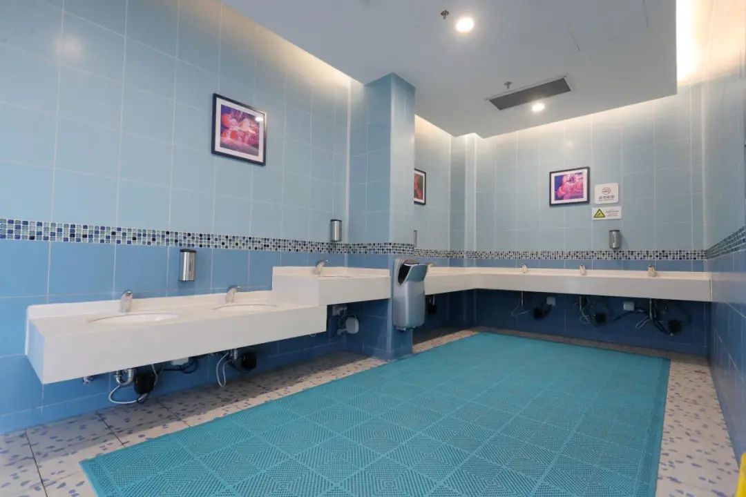 衛(wèi)生間設(shè)施設(shè)備齊全,包括第三人專用廁所、嬰兒護(hù)理臺(tái)等,衛(wèi)生用紙、烘干機(jī)以及洗手液等供應(yīng)充足。疫情期間在做好日常消殺的同時(shí),對公廁進(jìn)行跟蹤消殺保潔,做到隨用隨消。