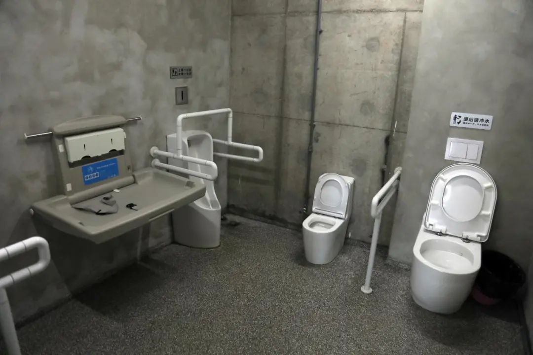 市民游客走進(jìn)位屬藍(lán)精靈樂園格格巫區(qū)域的衛(wèi)生間,仿佛走進(jìn)森林部落,老舊的棚子,儲(chǔ)藏著格格巫用來捕捉藍(lán)精靈的各種藥水瓶的裝飾工具,讓人忍不住放慢腳步去探秘;在小橋流水人家的江南古鎮(zhèn)朱家角課植園內(nèi),“課間”坐落一隅,新增第三衛(wèi)生間為老年群體、嬰幼兒等特殊群體提供更多人性化服務(wù);上港郵輪城景區(qū)旅游廁所正七邊形門廳設(shè)計(jì),通過中心的樹木環(huán)繞,將樹木融入室內(nèi),增強(qiáng)廁所的趣味性及景觀氛圍。