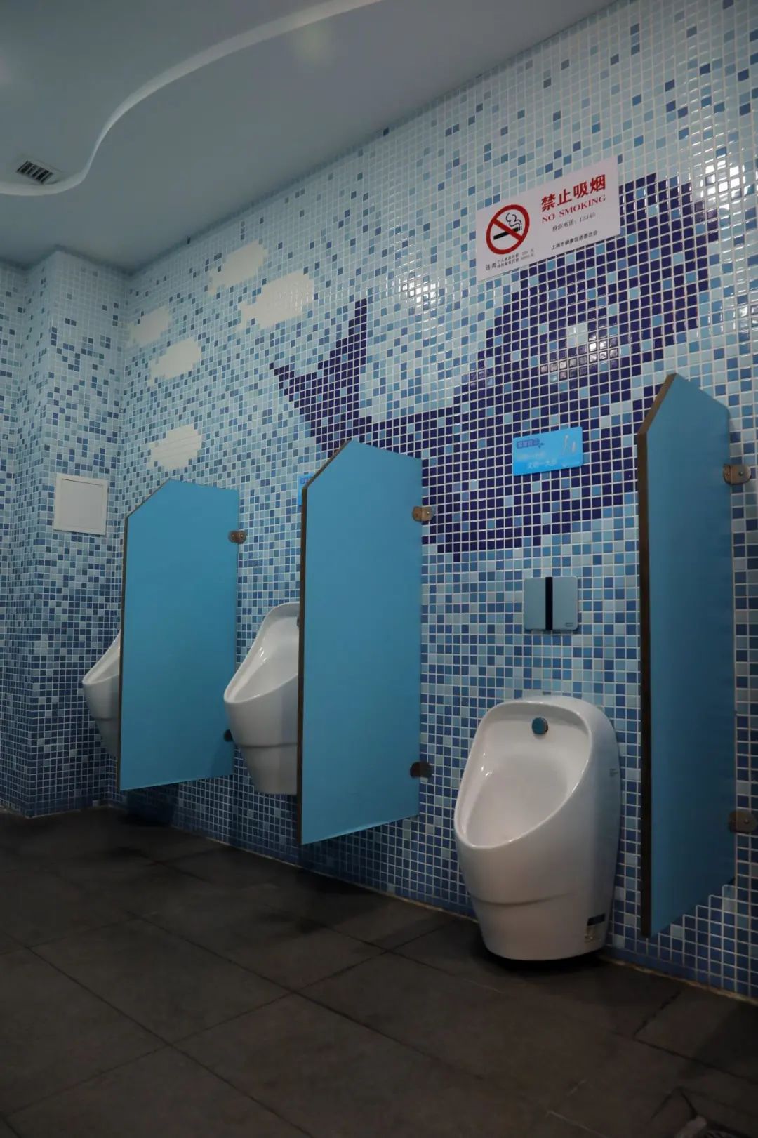 東體育會(huì)路公廁位于東體育會(huì)路715號,采用不同場景和顏色的墻面貼紙,各色動(dòng)物和自然景觀與充滿設(shè)計(jì)感的現(xiàn)代簡約風(fēng)融于一體。第三衛(wèi)生間設(shè)有兒童小便位、兒童馬桶、兒童洗手池、墻上都貼上了卡通風(fēng)格的貼紙讓小朋友消除陌生感。