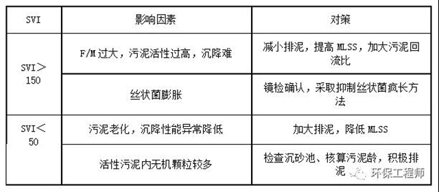 SVI主要反映污泥的松散程度,當(dāng)MLSS很高時(shí),僅用SV判斷污泥沉降性是不準(zhǔn)確的,必須結(jié)合SVI。對(duì)SVI的調(diào)控主要通過對(duì)MLSS的調(diào)整。