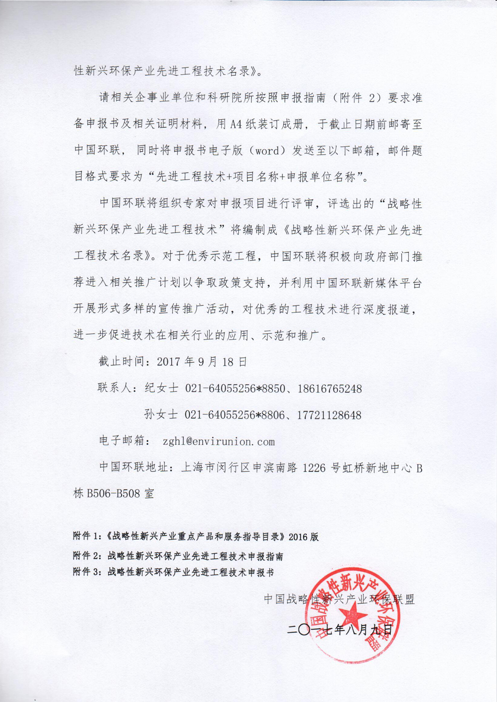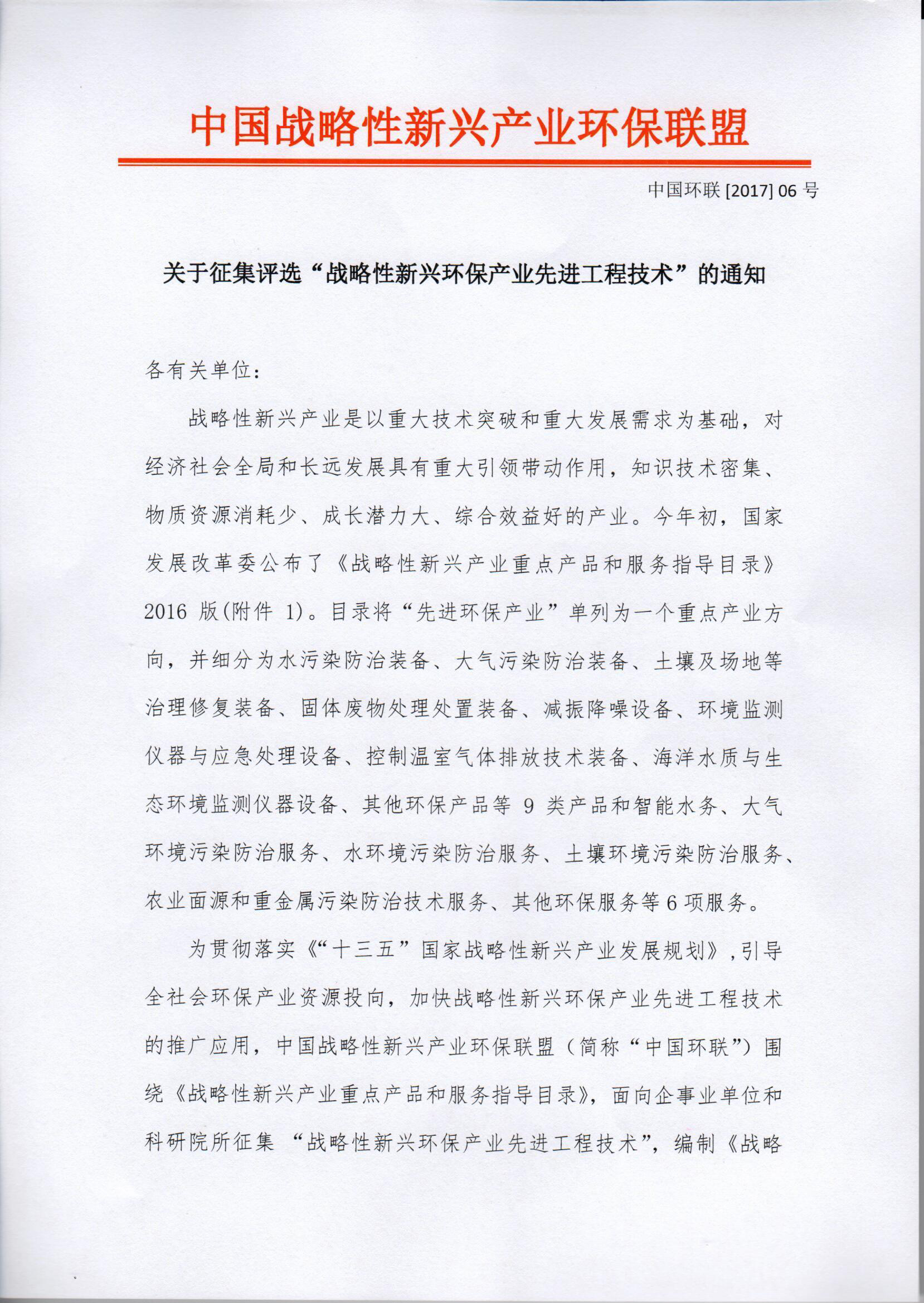 為貫徹落實《“十三五”國家戰(zhàn)略性新興產(chǎn)業(yè)發(fā)展規(guī)劃》,引導全社會環(huán)保產(chǎn)業(yè)資源投向,加快戰(zhàn)略性新興環(huán)保產(chǎn)業(yè)先進工程技術(shù)的推廣應用,中國戰(zhàn)略性新興產(chǎn)業(yè)環(huán)保聯(lián)盟(簡稱“中國環(huán)聯(lián)”)圍繞《戰(zhàn)略性新興產(chǎn)業(yè)重點產(chǎn)品和服務(wù)指導目錄》,面向企事業(yè)單位和科研院所征集“戰(zhàn)略性新興環(huán)保產(chǎn)業(yè)先進工程技術(shù)”,編制《戰(zhàn)略性新興環(huán)保產(chǎn)業(yè)先進工程技術(shù)名錄》。