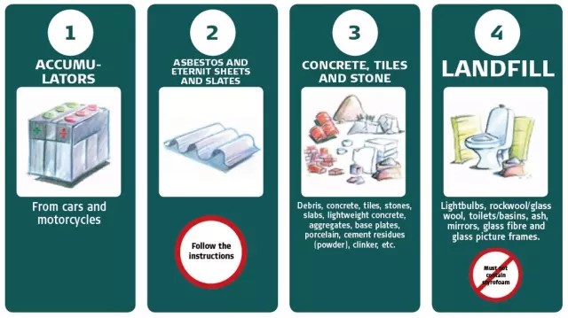 在Revas,垃圾被井然有序的分類在不同的區(qū)域:廢紙區(qū)、廢輪胎區(qū)、廢玻璃區(qū)、廢保溫棉區(qū)、廢建材區(qū)、廢木材區(qū)、自助廢棄物傾倒區(qū)和二手產品自取區(qū)。還有一個垃圾擠壓站,把篩選的垃圾進行擠壓處理方便運輸。