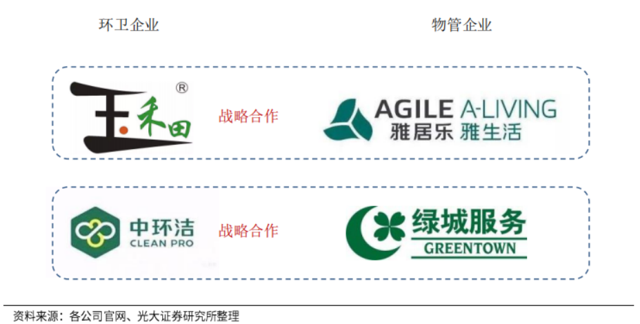 除了收并購和參與投標(biāo)外,物業(yè)與環(huán)衛(wèi)公司的戰(zhàn)略合作成為進軍城市的第三條路徑。如玉禾田與雅生活,中環(huán)潔與綠城服務(wù)的戰(zhàn)略合作。