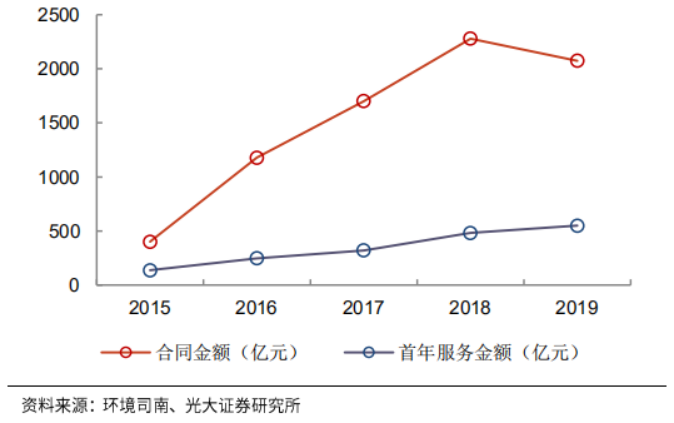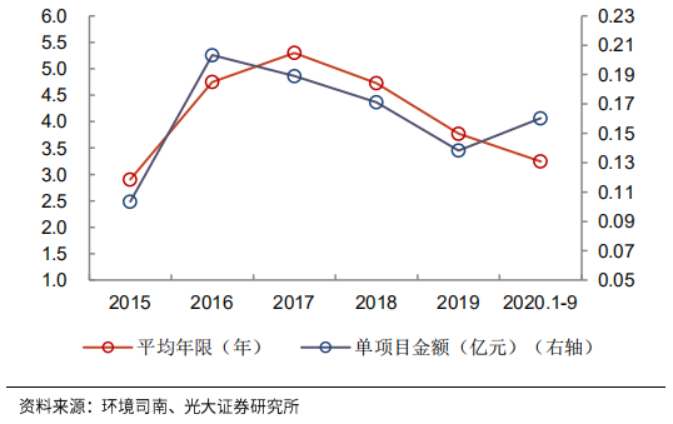 ▼圖15:全國環(huán)衛(wèi)合同單項目年限與金額提升