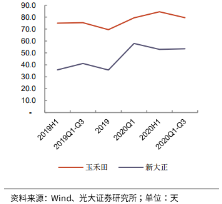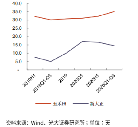 由于政府結(jié)算的因素,玉禾田和新大正的應(yīng)收賬款周轉(zhuǎn)天數(shù)在年終較低,年中較高。整體來看,玉禾田的應(yīng)收賬款和應(yīng)付賬款周轉(zhuǎn)天數(shù)都高于新大正,原因可能在于其“to G”業(yè)務(wù)占比更高,新大正一部分業(yè)務(wù)為“toB”業(yè)務(wù)。綜合來看,兩者凈營業(yè)周期相近,且表現(xiàn)出相似的變化趨勢。