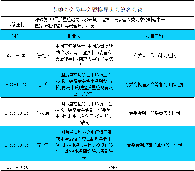 中國質量檢驗協(xié)會水環(huán)境工程與裝備專委會會員年會暨2020水環(huán)境發(fā)展論壇大會日程