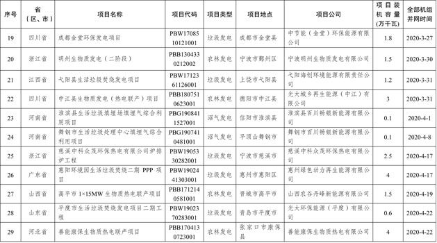 附件:2020年生物質(zhì)發(fā)電中央補貼項目申報結果