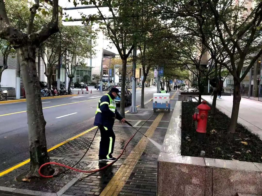 ●“特色”保障(升級版)。外灘起跑點中山東一、二路(外白渡橋—金陵東路,約1.2公里),實行電動手推式清掃車+雁式人工清掃+“鏈式”聯(lián)動機械作業(yè)法聯(lián)合作業(yè)模式,即待運動員起跑結束后在三個作業(yè)點依次按雁行隊列開展保潔。隨后,實行1組五車“鏈式”聯(lián)動機械作業(yè)?!捌諕摺保拔鼔m”,“灑水”,“精掃”,“沖洗”,“洗刷”。保潔要求:10分鐘內(nèi)將道路垃圾清理干凈。