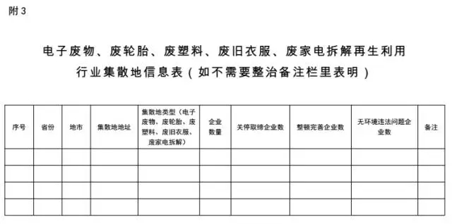 各省(區(qū)、市)按照清理整頓實(shí)施方案,先期開展本行政區(qū)域內(nèi)專項清理整頓摸排工作,并于2017年9月30日前將本省(區(qū)、市)再生利用企業(yè)信息表(集散地外)和集散地信息表(見附2、3)分別報送環(huán)境保護(hù)部、發(fā)展改革委、工業(yè)和信息化部、公安部、商務(wù)部和工商總局。