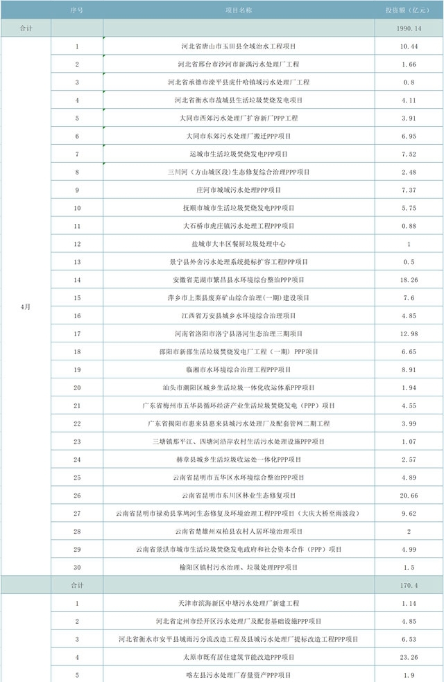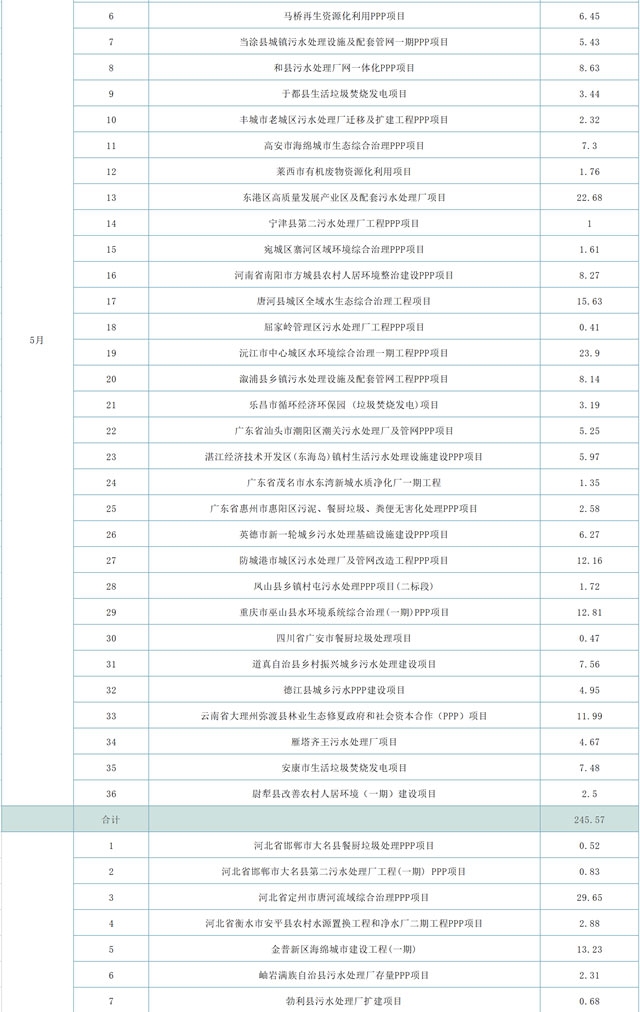 另,天津市北部山區(qū)生態(tài)保護(hù)PPP項(xiàng)目計(jì)劃投資300億元,河北省廊坊市三河市燕郊海綿城市-合流制管網(wǎng)溢流污染控制工程PPP項(xiàng)目占據(jù)29.11億元,灌南縣城鄉(xiāng)一體化污水治理PPP項(xiàng)目29.25億元,宜都市“兩江一河”區(qū)域綜臺治理PPP項(xiàng)目25.58億元,耒陽市城區(qū)水環(huán)境綜臺治理工程PPP項(xiàng)目22.3億元,江津區(qū)水環(huán)境綜合治理工程(一期) PPP項(xiàng)目達(dá)到38.92億元,這幾項(xiàng)綜合就超過了445億元。