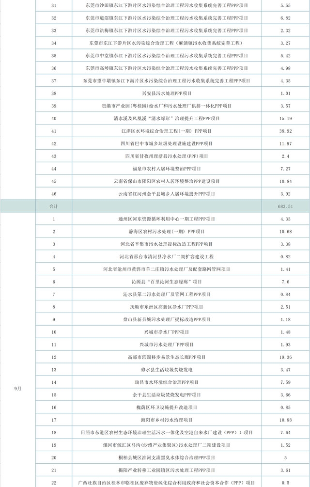 2020年11月27日,財(cái)政部PPP中心公開了2020年10月發(fā)布的106個(gè)新入管理庫項(xiàng)目。其中,有31項(xiàng)環(huán)保項(xiàng)目。