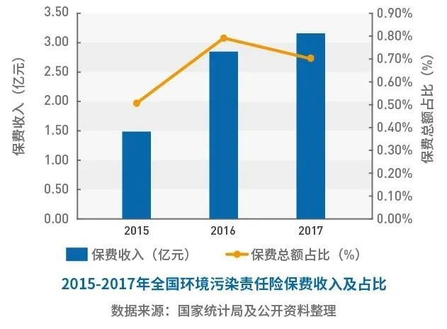 《報告》研究發(fā)現(xiàn),2015年至2017年間,中國環(huán)責(zé)險投保企業(yè)數(shù)量不斷增加,保費收入不斷增長,保險費率有所下降。然而,從全國范圍看,投保企業(yè)的數(shù)量占規(guī)模以上工業(yè)企業(yè)的比例仍不足5%,環(huán)責(zé)險保費收入占責(zé)任險保費收入仍不足1%,保險費率仍高于一般責(zé)任險的平均保險費率,投保規(guī)模有待提高,產(chǎn)品性價比有待進一步優(yōu)化。