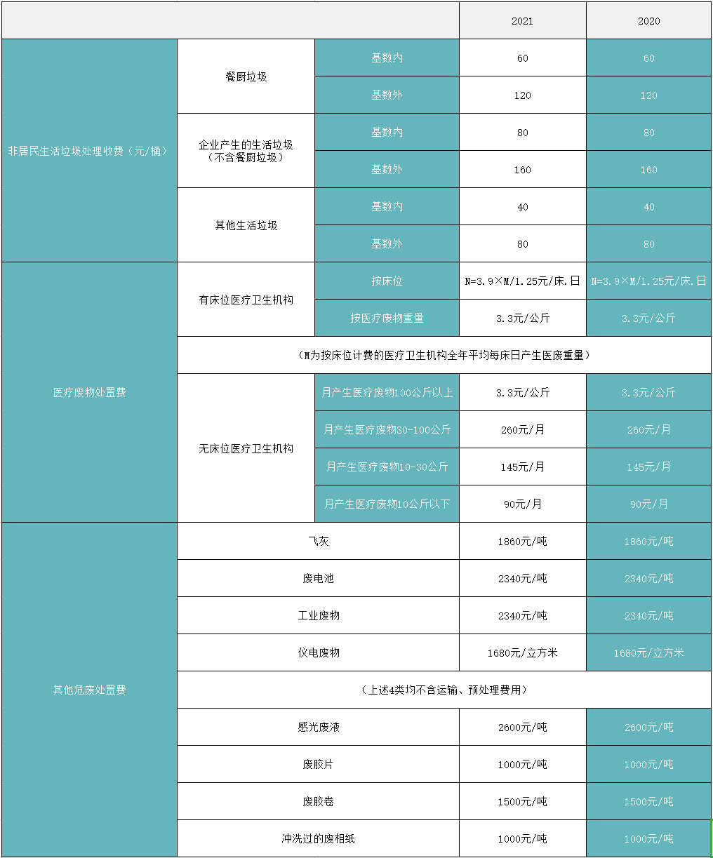 與2020版相比,非居民生活垃圾處理收費(fèi)標(biāo)準(zhǔn)和危廢處置收費(fèi)標(biāo)準(zhǔn)沒有變化。